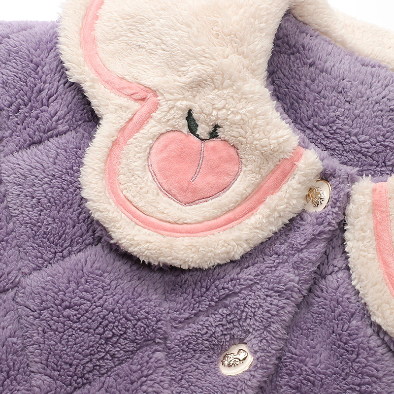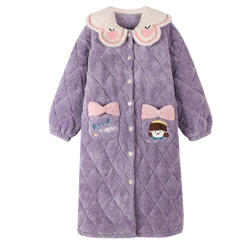 Honeypeach Teenage Girl's Day Department Coral Suede Pyjamas Woman Autumn Winter Sleeping Robe Robes Long Version Clip Cotton Thickened Warm Home Clothing
