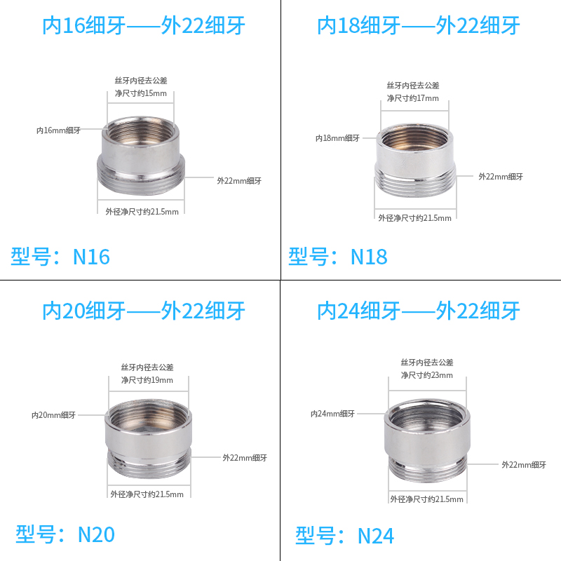 Bench Basin Joint Silver 4 Sub-standard joint (N16) 16mm fine teeth in outer 16mm 22mm fine teeth (N18) 18mm fine tooth transexternal 22mm fine teeth (N20)