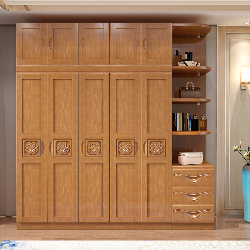 Solid Wood Wardrobe New Chinese Big Wardrobe Four Doors Six Doors Wooden Bedrooms Large Closet Modern Minimalist Economical Type Furniture-Taobao