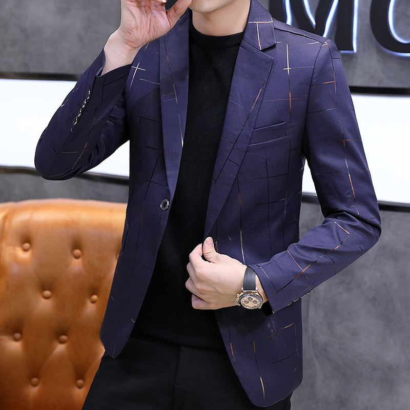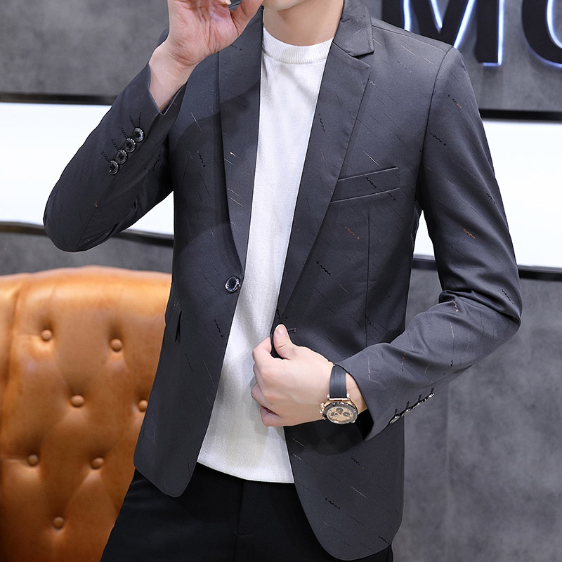 New Western-style men's jacket Han version Body Casual Blouse Trend Flower Pattern Small Suit Spring Fall Single Western Suit