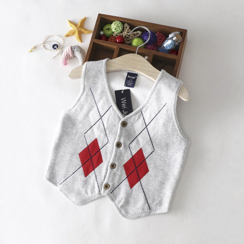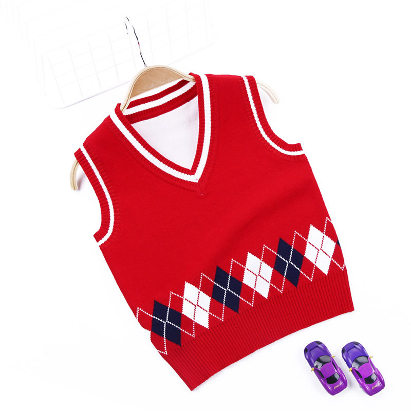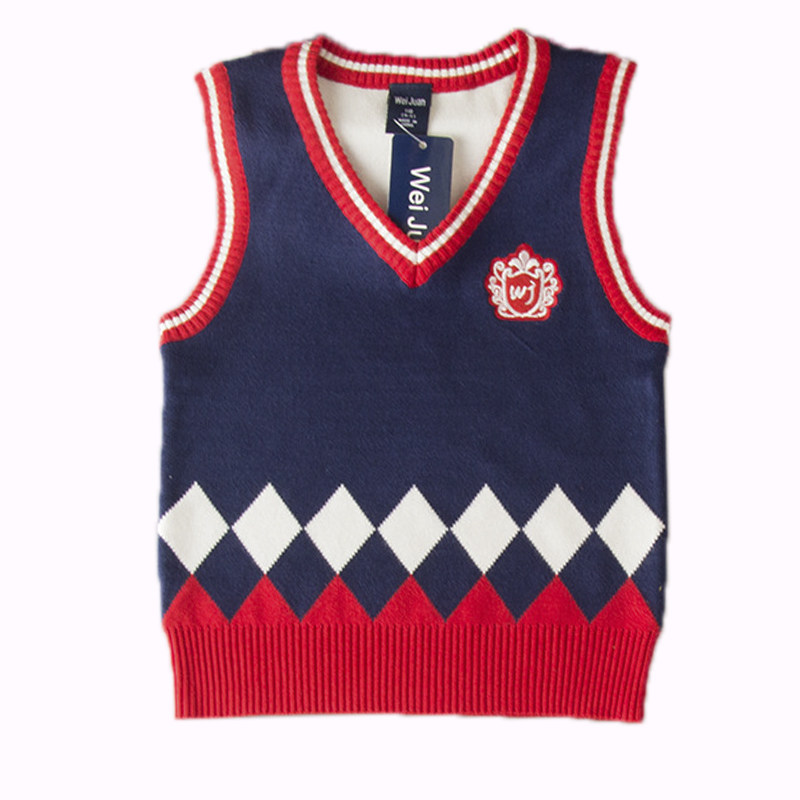 Spring and Autumn Children's Wool Vest Boys College Wind School of Baby Sweater Girl Double-deck Knitting Shirt