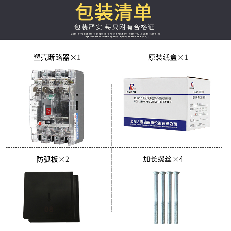 Shanghai People RCM1-250L 4300 plastic shell breaker NM1 three-phase electric transparent air switch 4P 125A