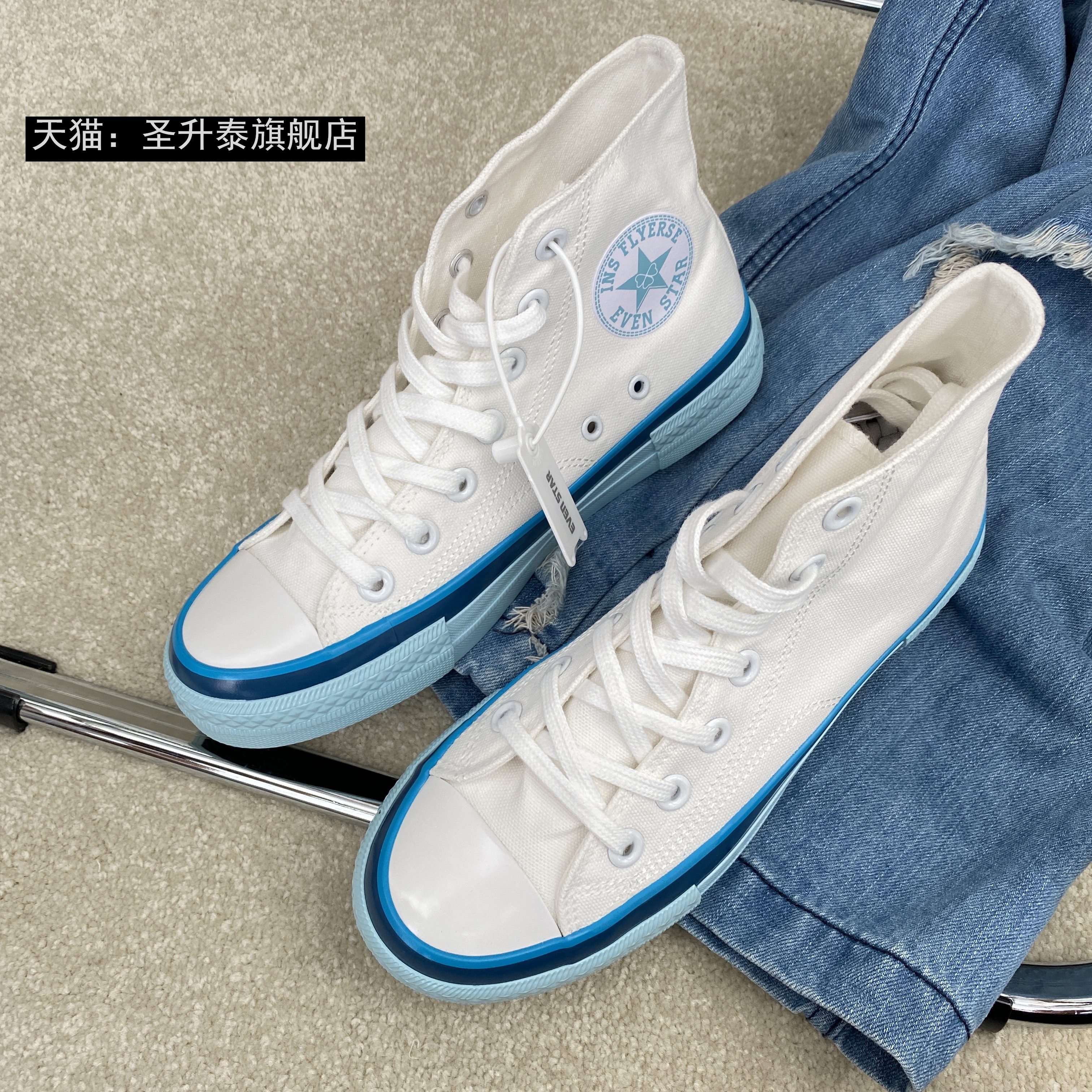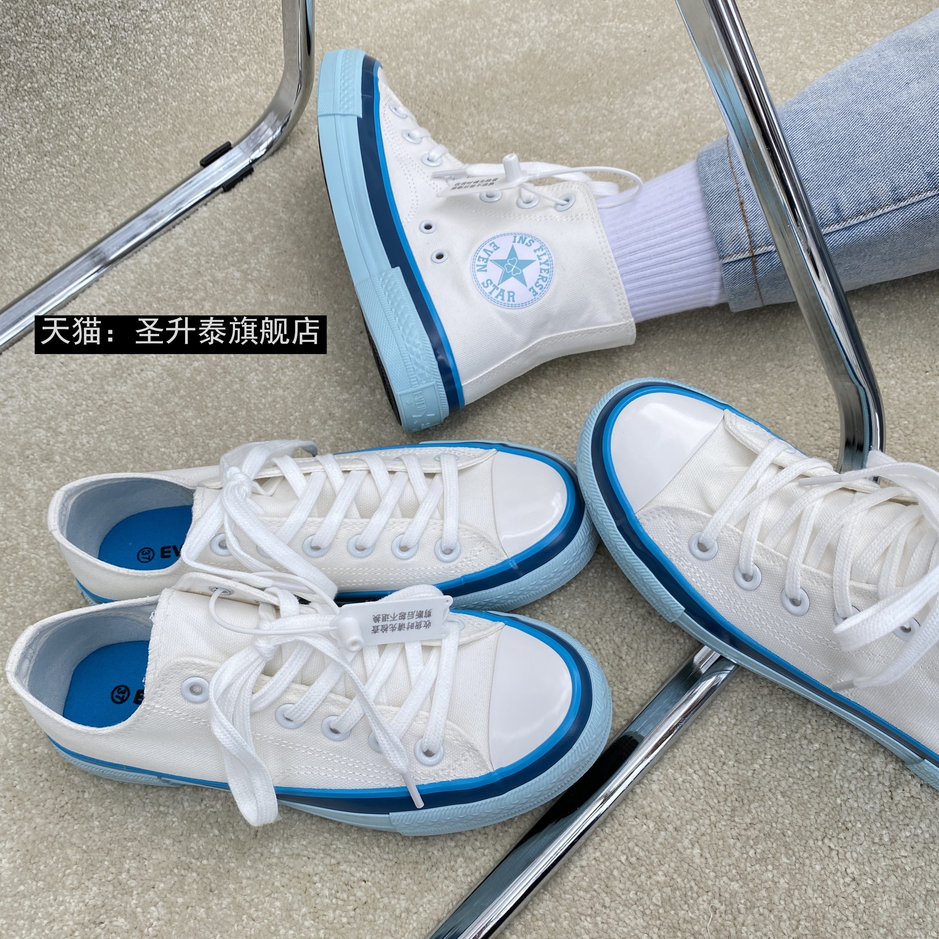 Cream blue high tube Cream blue low top