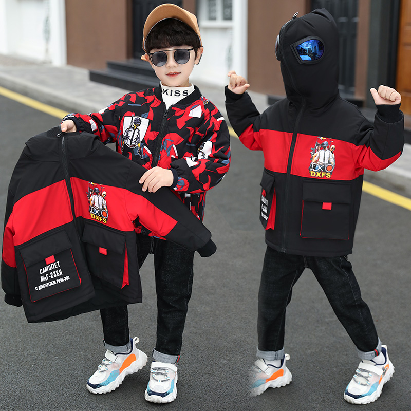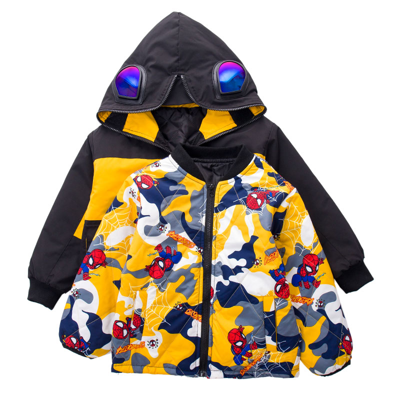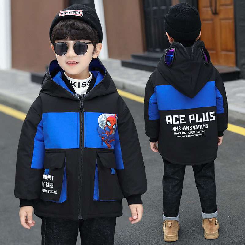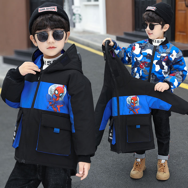 Children's sub-machine clothes boy autumn winter coat with chicken three-in-one detachable thickened winter style wind clothes Spiderman clothes