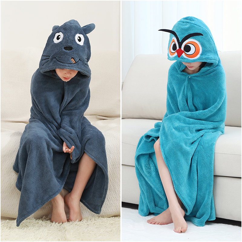 Children's bath towel Cloak hooded can be worn can be wrapped in winter thick than pure cotton absorbent bath towel material Baby bathrobe