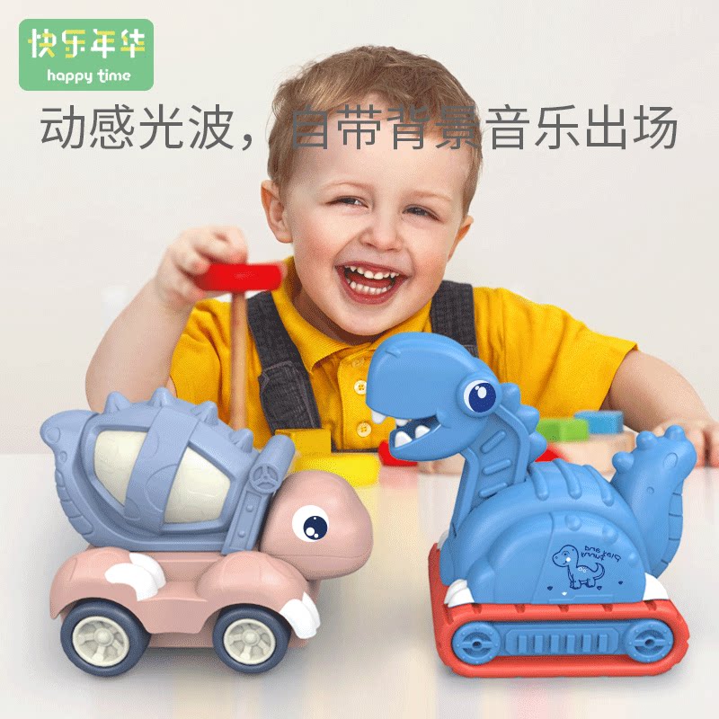 Children's toy engineering car dinosaur excavator mixer luminous pronunciation universal sliding puzzle dinosaur car
