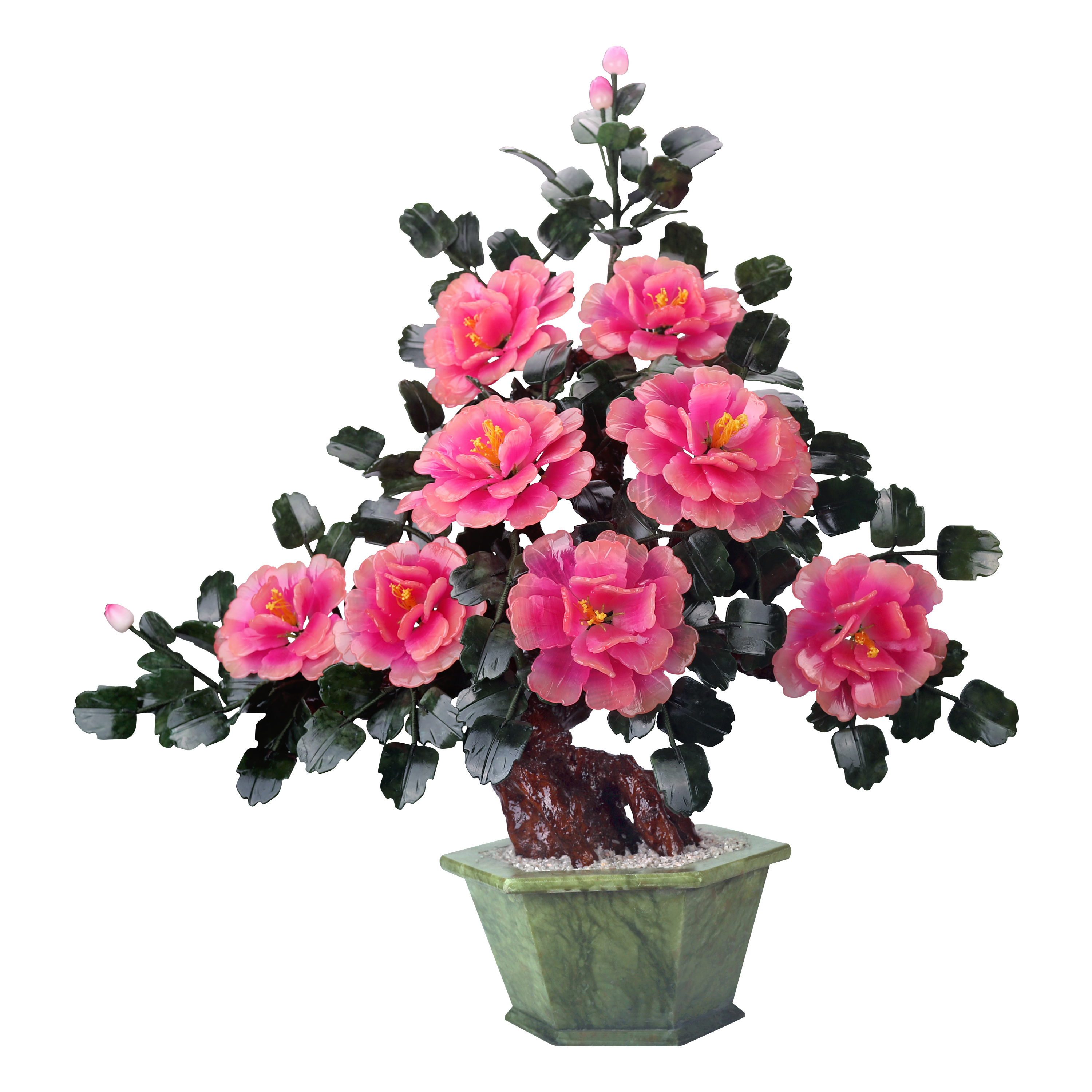 Jade carving large peony flower jade handicraft new Chinese jade carved coffee table frame TV cabinet ornament ornaments