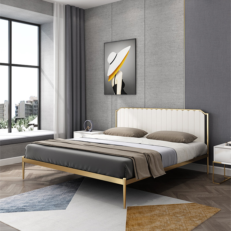Gold frame light gray leather bed frame gold frame-dark gray leather bed frame black frame light gray leather bed frame gold frame rice white leather bed frame gold frame-off white leather bed frame mattress gold