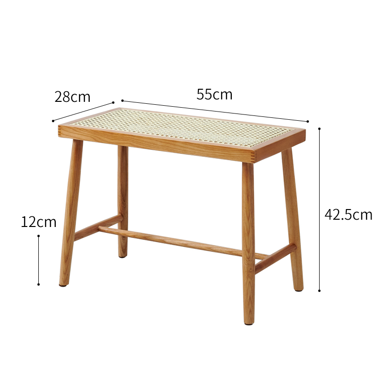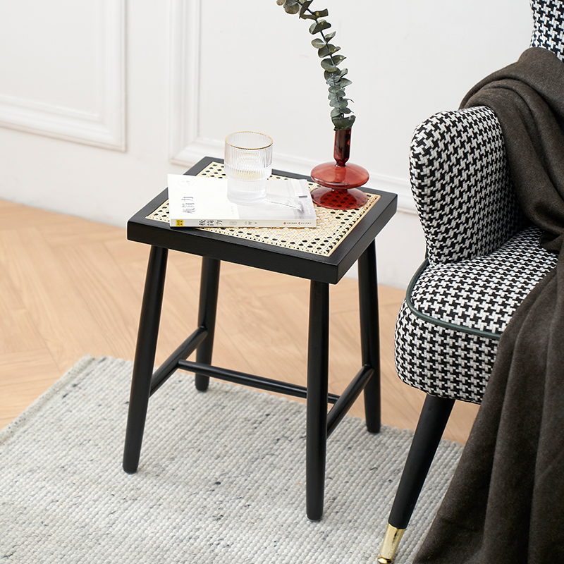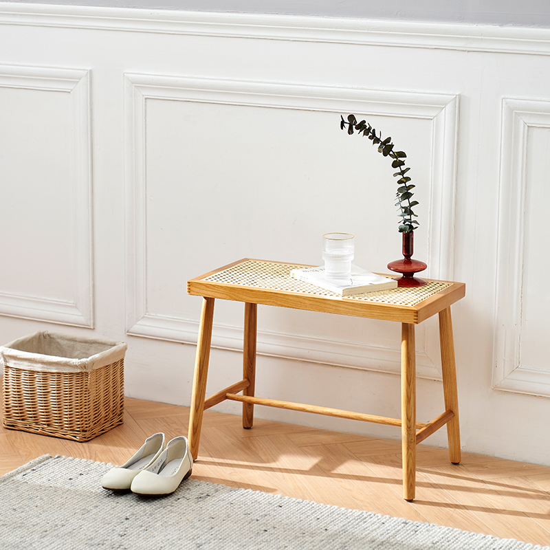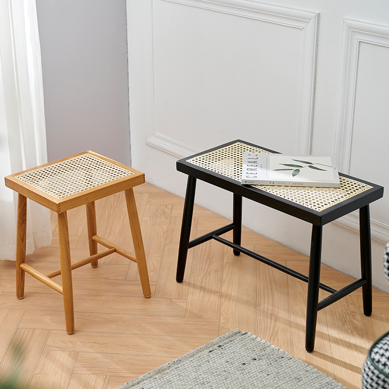 Nordic Japanese-style solid wood square stool rattan stool entrance door change shoe stool simple modern wear shoe stool bench side table