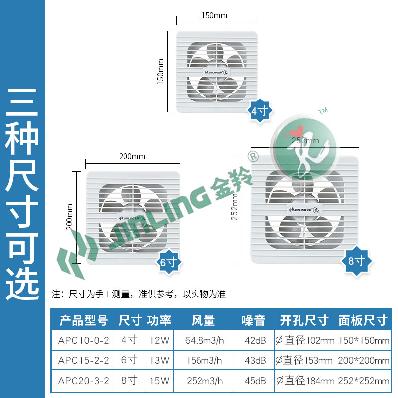 Jinling window-type exhaust fan home ventilation front and rear round powder room glass round hole exhaust fan 4 6 8 inches