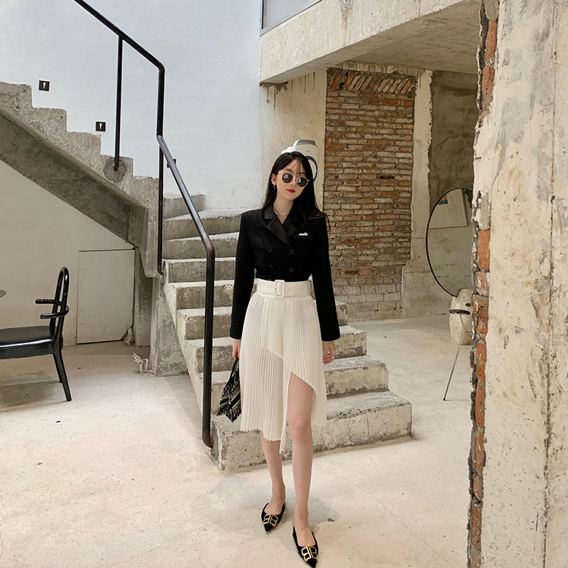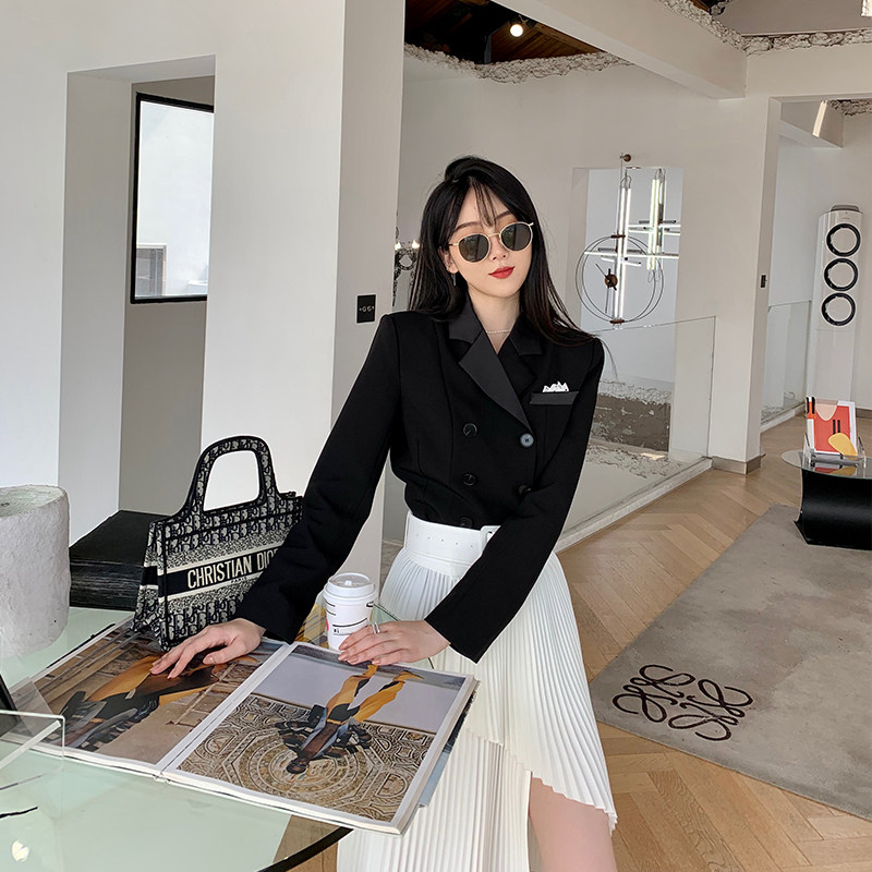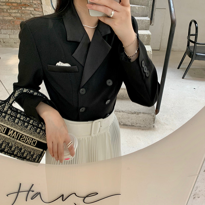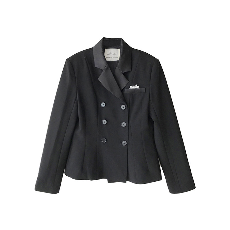 NORA Black Retro Suit Jacket Woman 2022 Autumn close-up Body Temperament Short double-row Buttoned Little West Suit Blouse