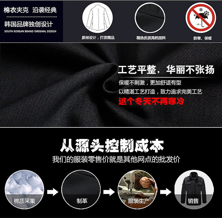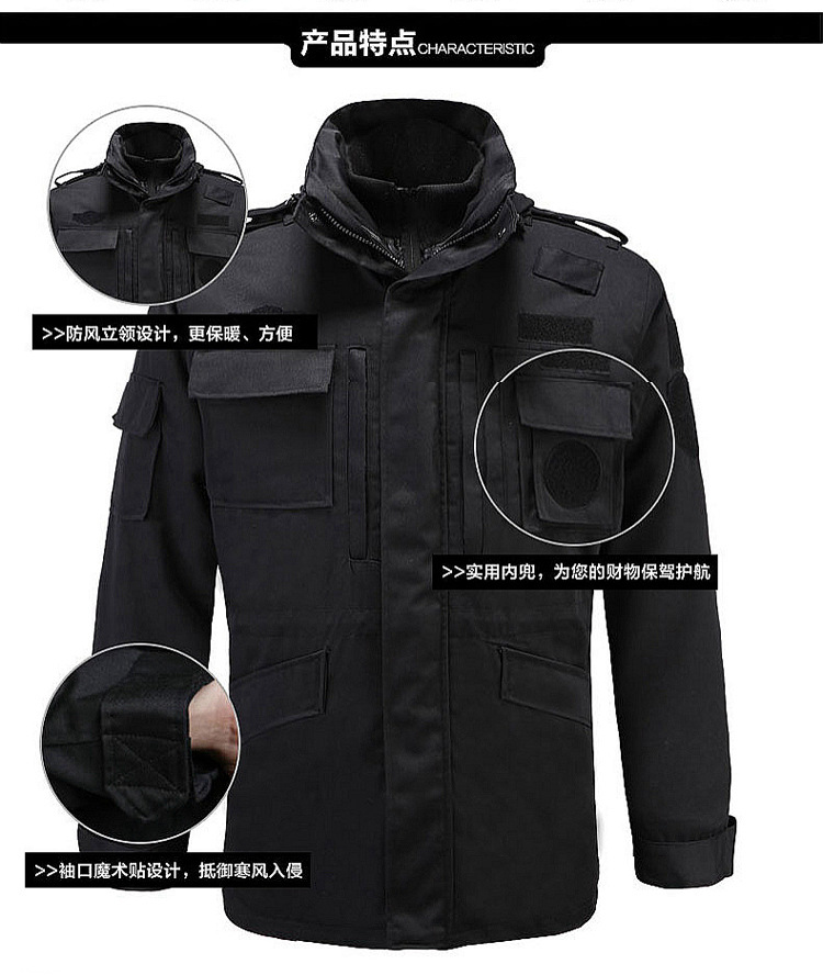 Winter security coat velvet thickened loose anti-winter clothing Cotton overalls Men's and women's outdoor combat training clothes black