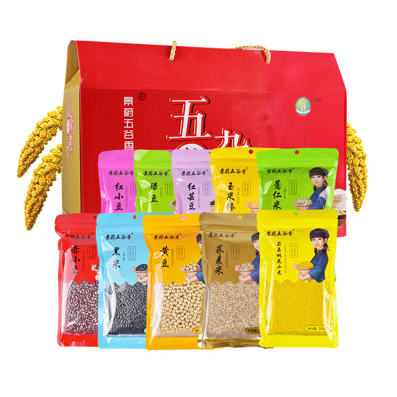 Jingwei Wugu fragrant Five Gu Cereals Gift Boxes of Miscellaneous Grain 10x350g Composition Ulxian Yellow millet Cereals Big Gift Bag