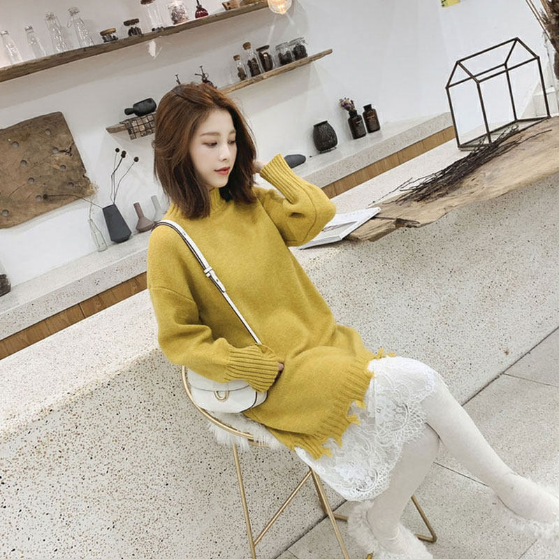 Pregnant women's sweater with long version of autumn and winter relaxed fashion knit Hebbon winery Pregnancy Mother Tide Bottling Winter