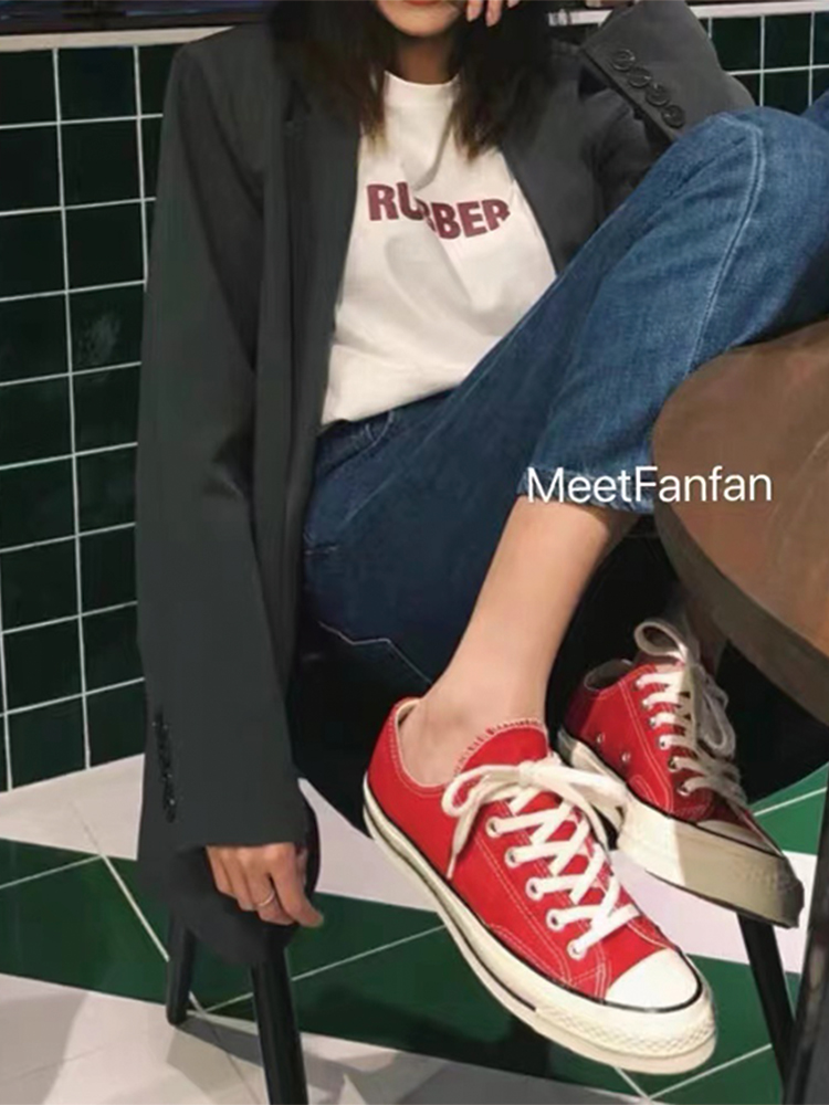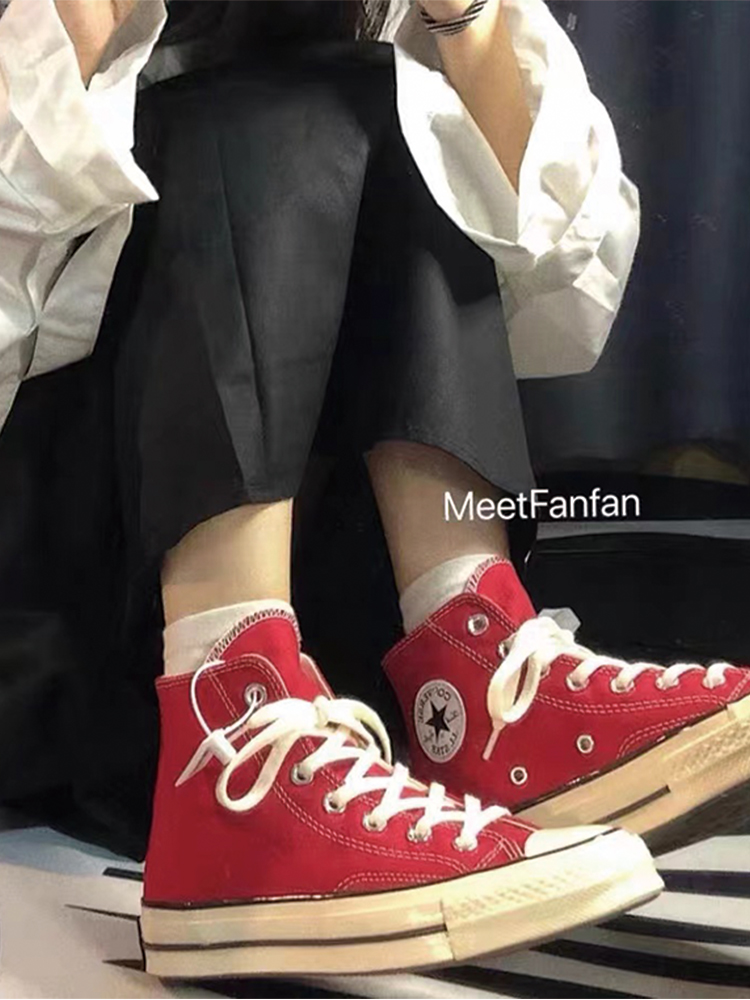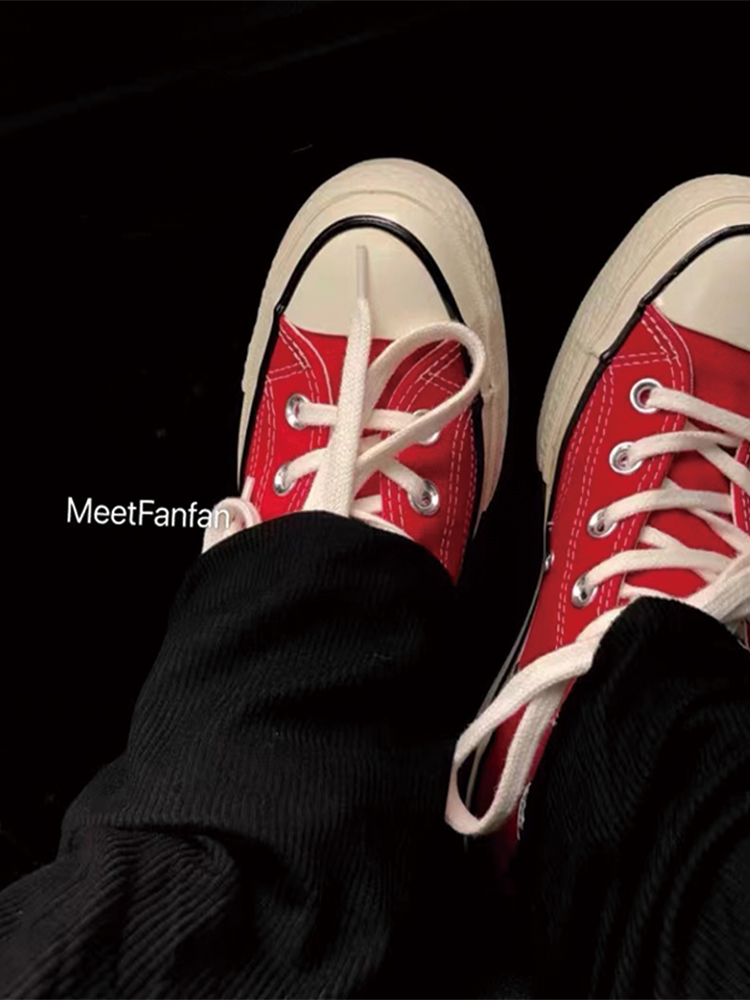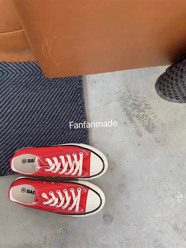 Lighting must enter ~ Korean retro life big red red enamel red white low high tube 1970s canvas shoes