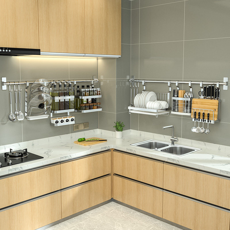 304 Stainless Steel Kitchen Shelve Wall Wall-mounted Pendant Free Pendant Knife Holder wall Rack Seasoning Containing layer Shelf thickened