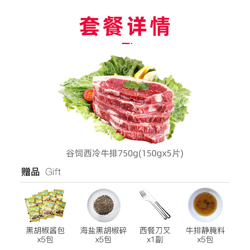 Beef 100-year-old Angus M3 Grain-fed Sirloin Raw Cut Steak Steak Snow texture set Fresh non-marinated 750g