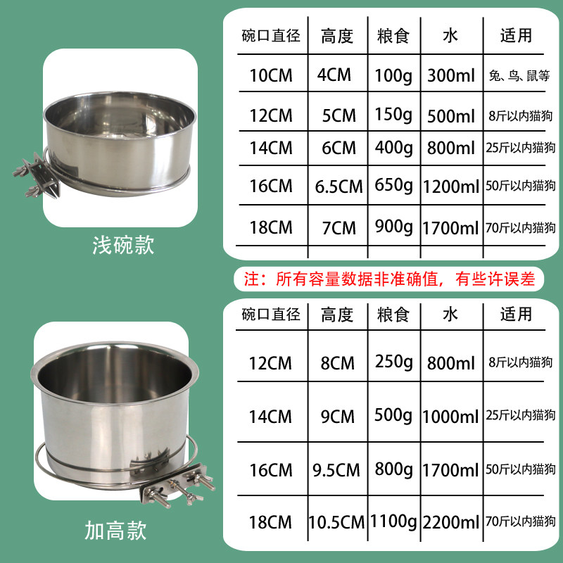 Dog bowl Anti-tipping Dog food bowl Hanging drinking bowl Cat bowl Cat bowl Stainless steel fixed dog bowl hanging cage Pet bowl