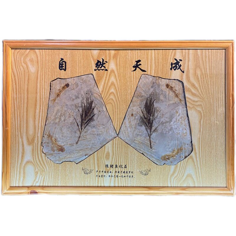 Liaoxi Chaoyang Paleontological Fossil Plant Fossil Boutique Fish and Grass Original State Solid Wood Home Decoration
