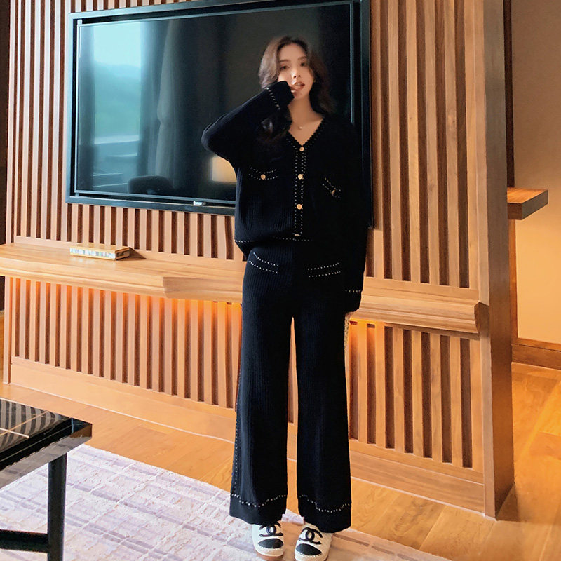 Blue Language Great Size Women Dress Fat Sister Mm Herbon Wind Knit Sweatshirt Broadlegged Pants Spring Dress New Tibetan Flesh Display Slim Fit