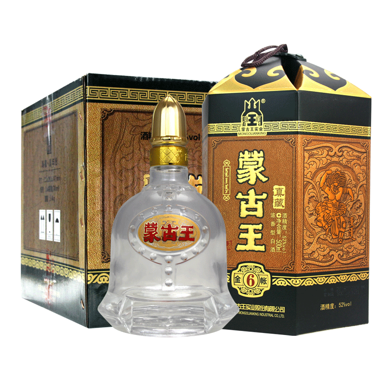 Mongolian King Liquor Golden Account 6 Inner Mongolia grassland liquor pure grain wine 52 degrees 500ml*4 bottles of whole box of strong fragrance