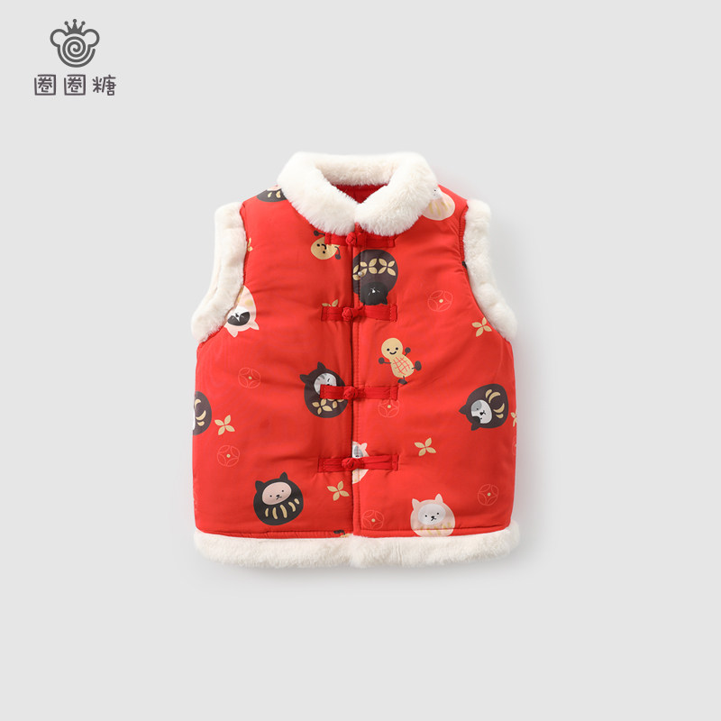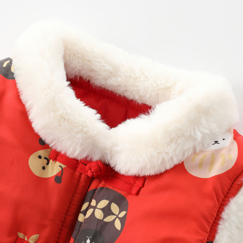 Girl Cotton Waistcoat Winter Clothing Outside Wearing children's baby Chinese New Year Horse clip baby thickened red Tang dress Byyear vest