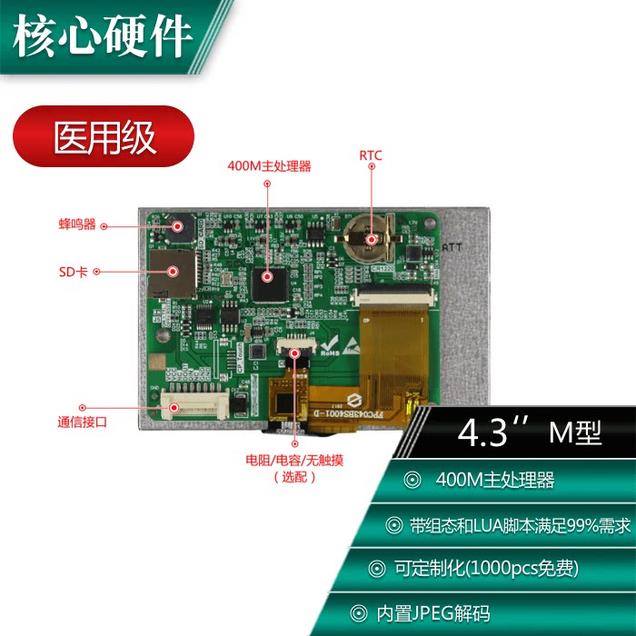 4 3 inch 480 * 272 8P Interface Guangzhou Dcolor CM Series Medical grade serial port screen display LCD screen