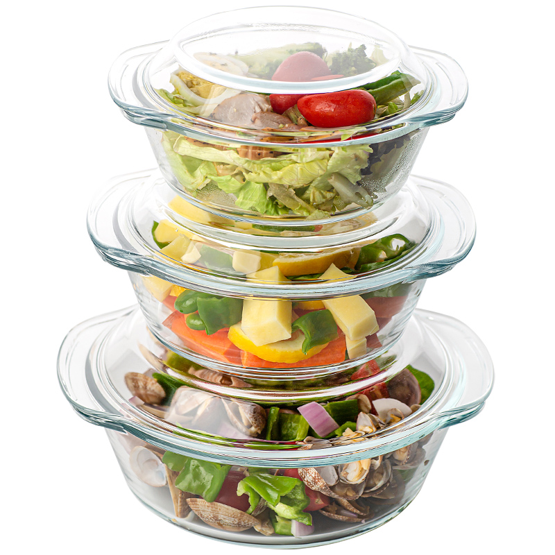 Grapefruit One grain high boron silicon glass crystal saucepan high temperature resistant salad bowl with lid soup bowl Microwave multifunctional saucepan