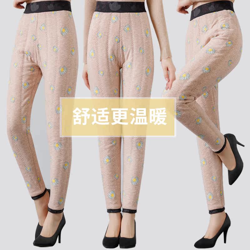 Middle-aged and elderly plus velvet thickened silk cotton pants female mother winter wear Northeast underwear high waist warm pants for the elderly