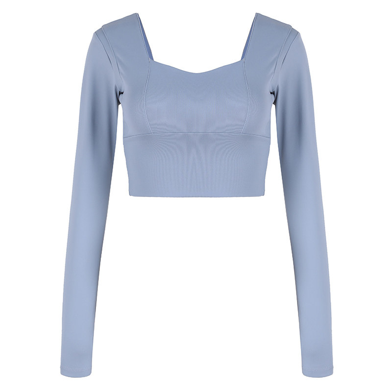 annerun beauty back yoga dresses woman long sleeve T-shirt with chest cushion tight sports blouses net red dew navel gym gym