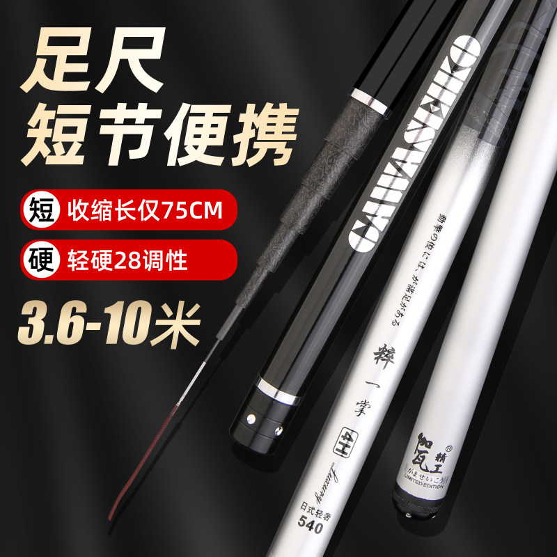 Floating raw hand rod fishing rod short section stream stream rod carbon ultra-light super hard 28 adjustment hand rod crucian carp rod carp rod 3.9 meters