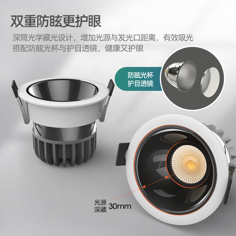 Deep cup anti-glare cob spotlight embedded LED bullfights anti-display wall lamps household dark light spotlight