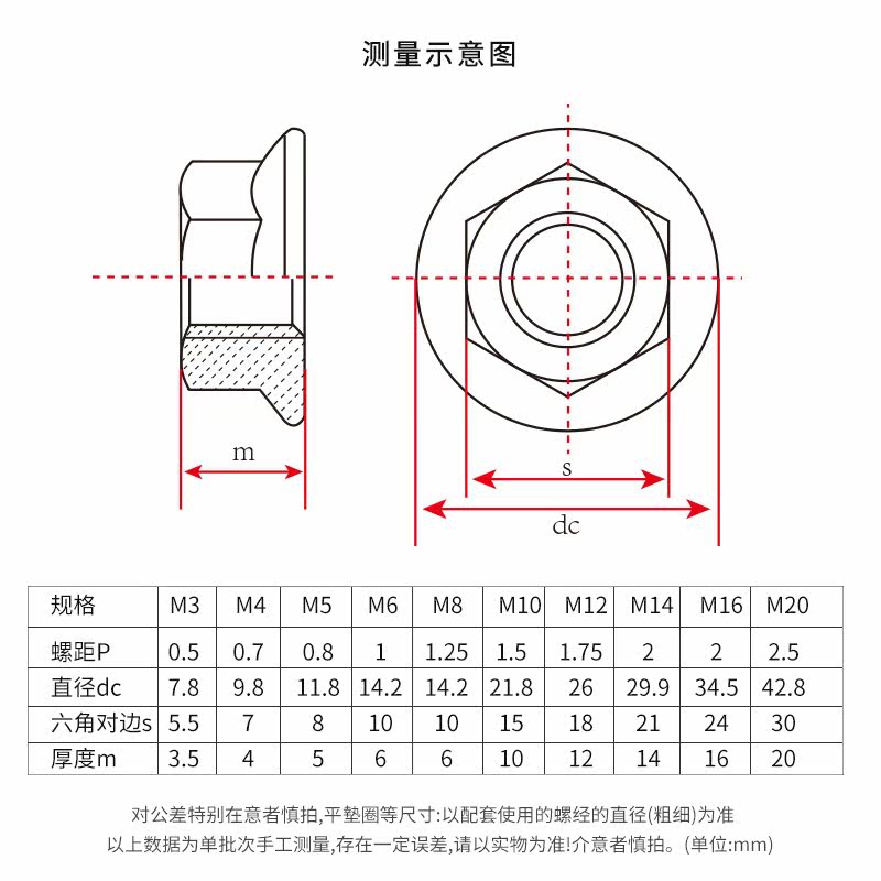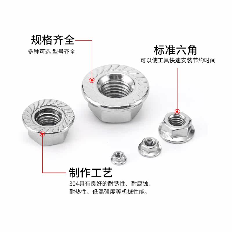 Flange nut 304 stainless steel hexagon non-slip screw cap screw cap anti-loosening nut M3M4M5M6M8M10M12