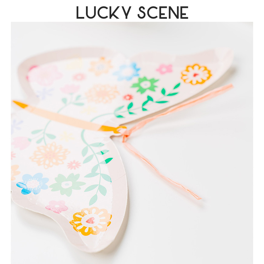 (Auspicious Props) Colour flower butterfly Alien Laffergrass tentacle disposable paper disc cutlery Family Gathering-Taobao