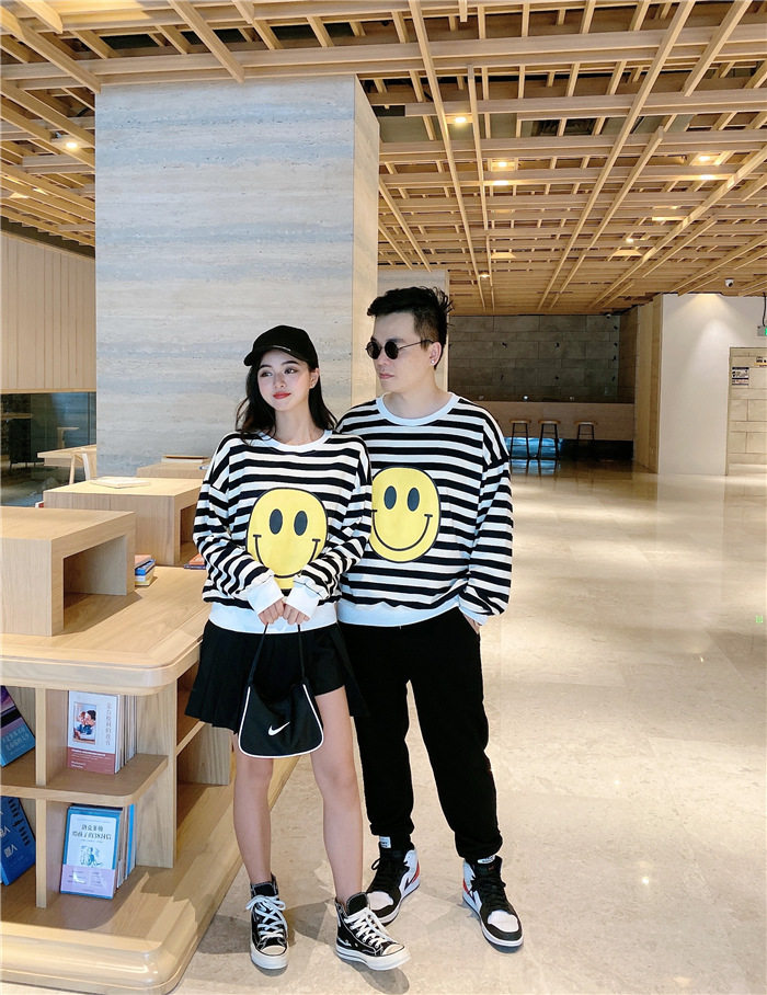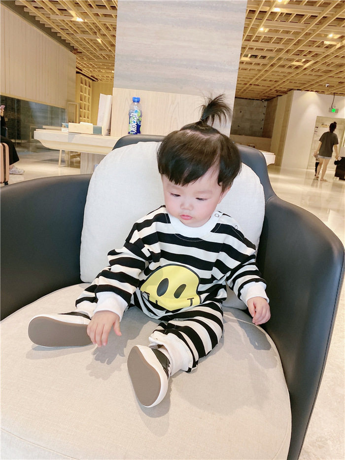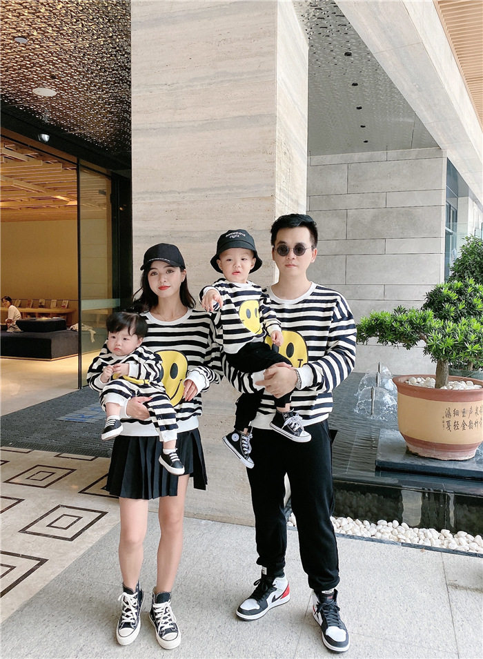 2020 Autumn/Winter New Family Wear Smiley Stripe Print Sweatshirt Family Four-piece Creeper Trendy Long Sleeve T Shirt