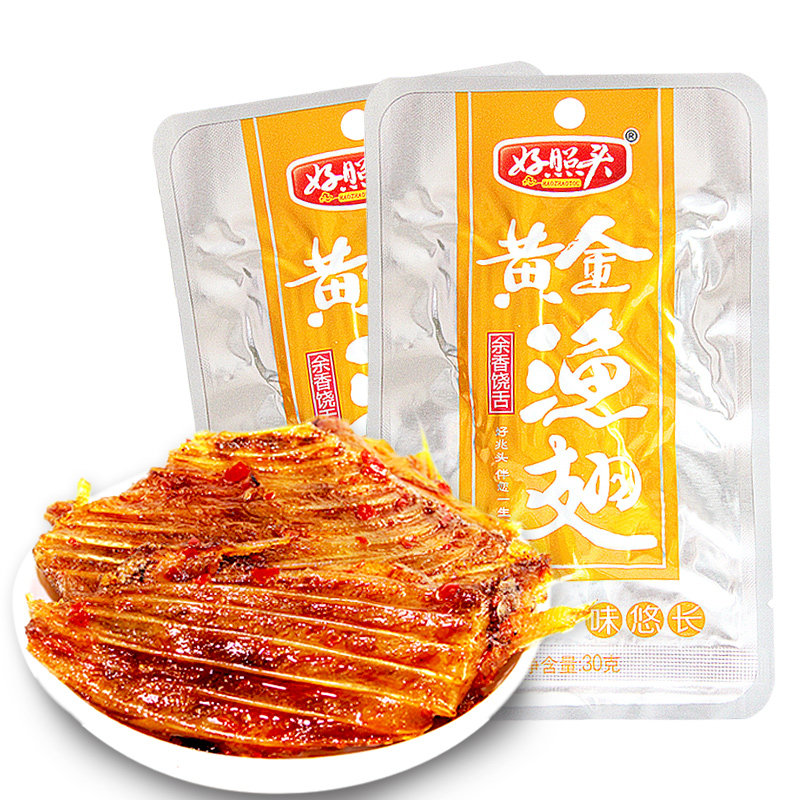 Good photo of the gold Shark Fin Fish in Hunan Special production 23g * 20 packets good sign fish steak spicy and spicy zero food snack