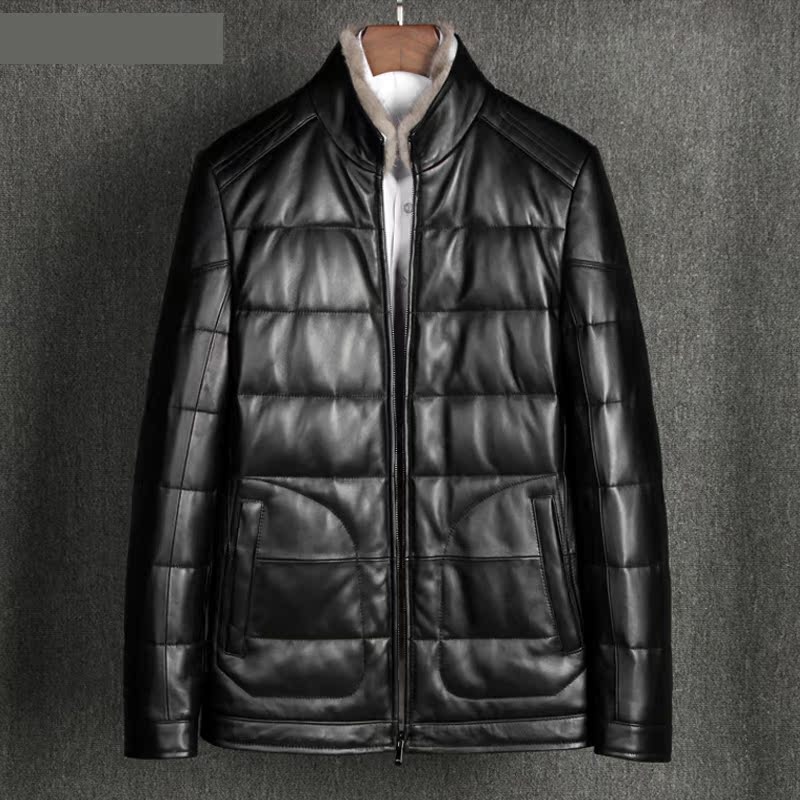 Winter Haining leather leather down jacket short men's sheepskin down jacket Mink stand-up collar leather jacket jacket