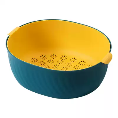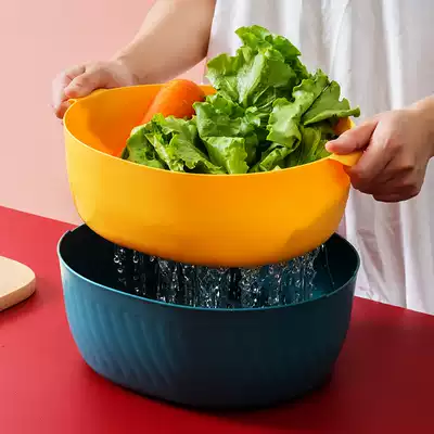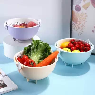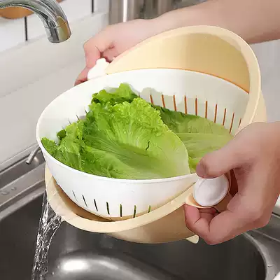 Creative double layer drain basket kitchen washing basket rotating water washing vegetable basin household multifunctional fruit storage plate