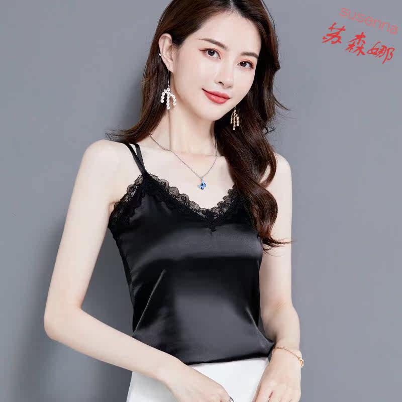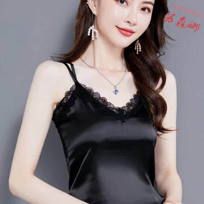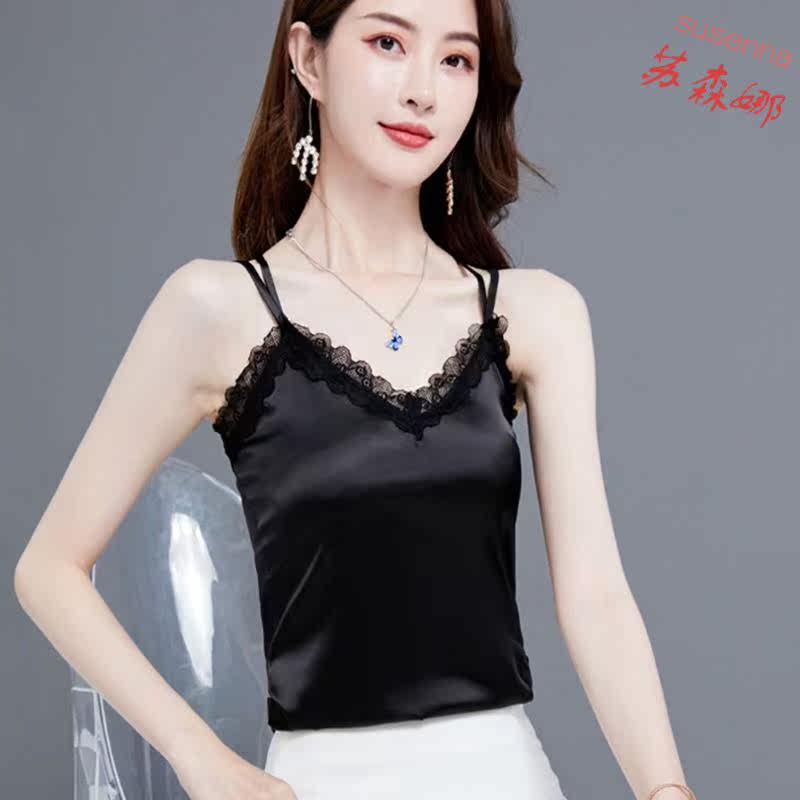 Spring and summer black lace Chiffon suspender small vest women show thin suit wear outside the sleeveless inner coat top