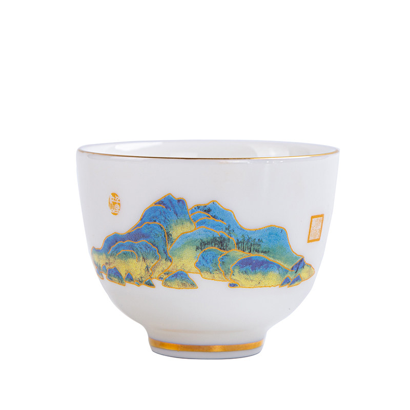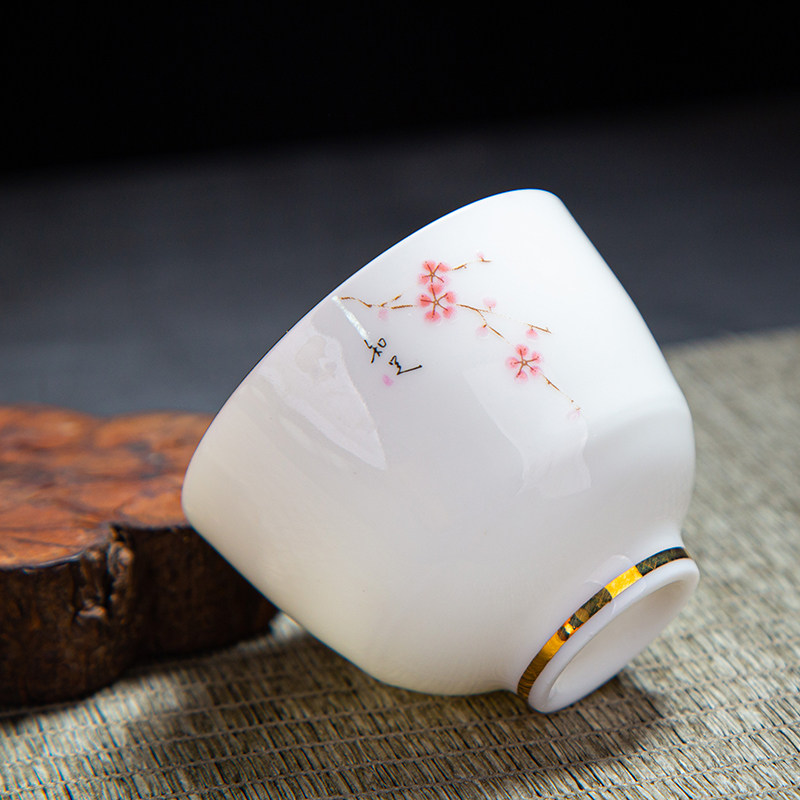 Defied Goat Fat Jade White Porcelain Teacup Tea Drinking Cup Ceramic Single Cup Master's Cup Tea Tea Brewery Cup Two Pieces