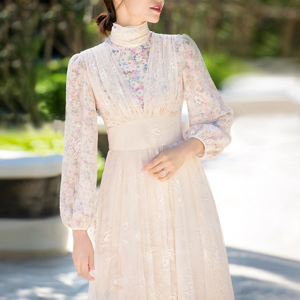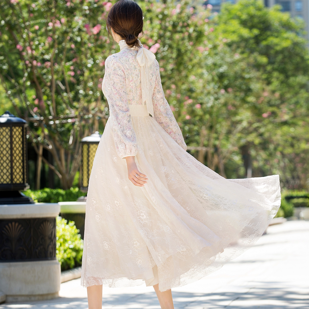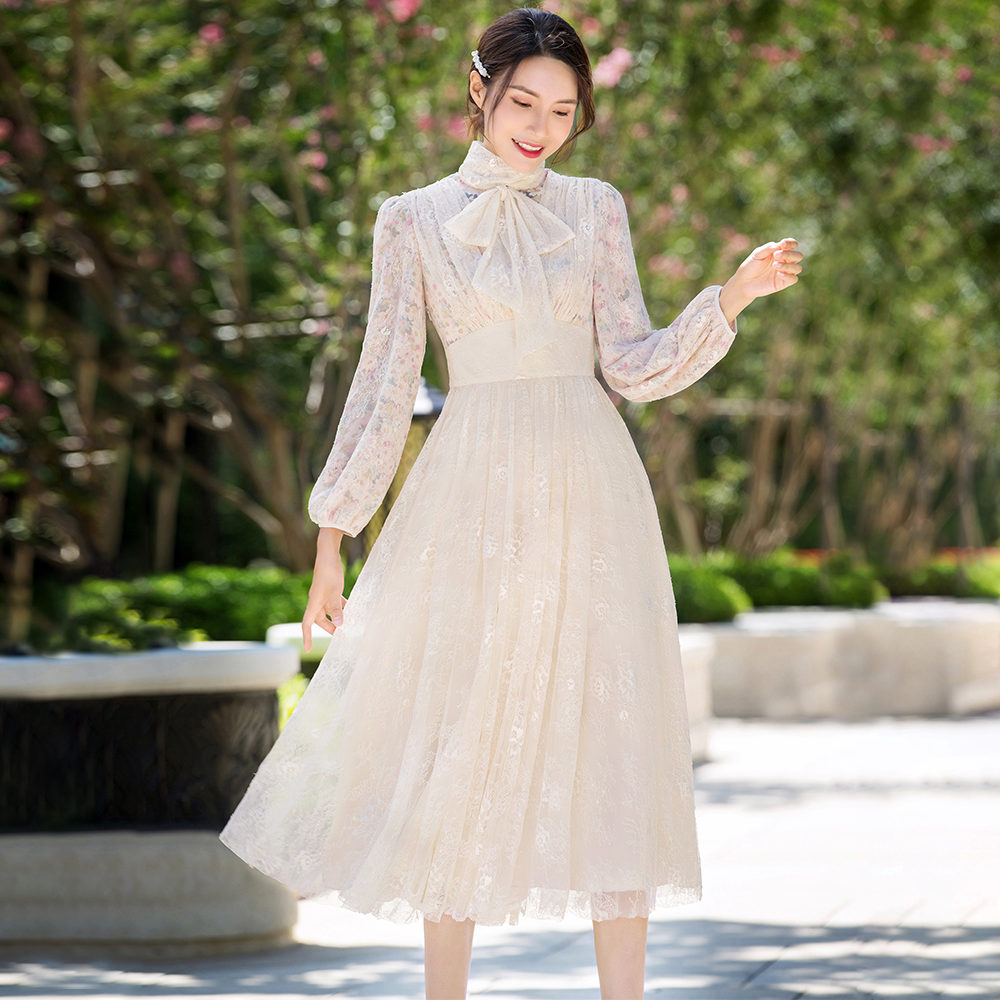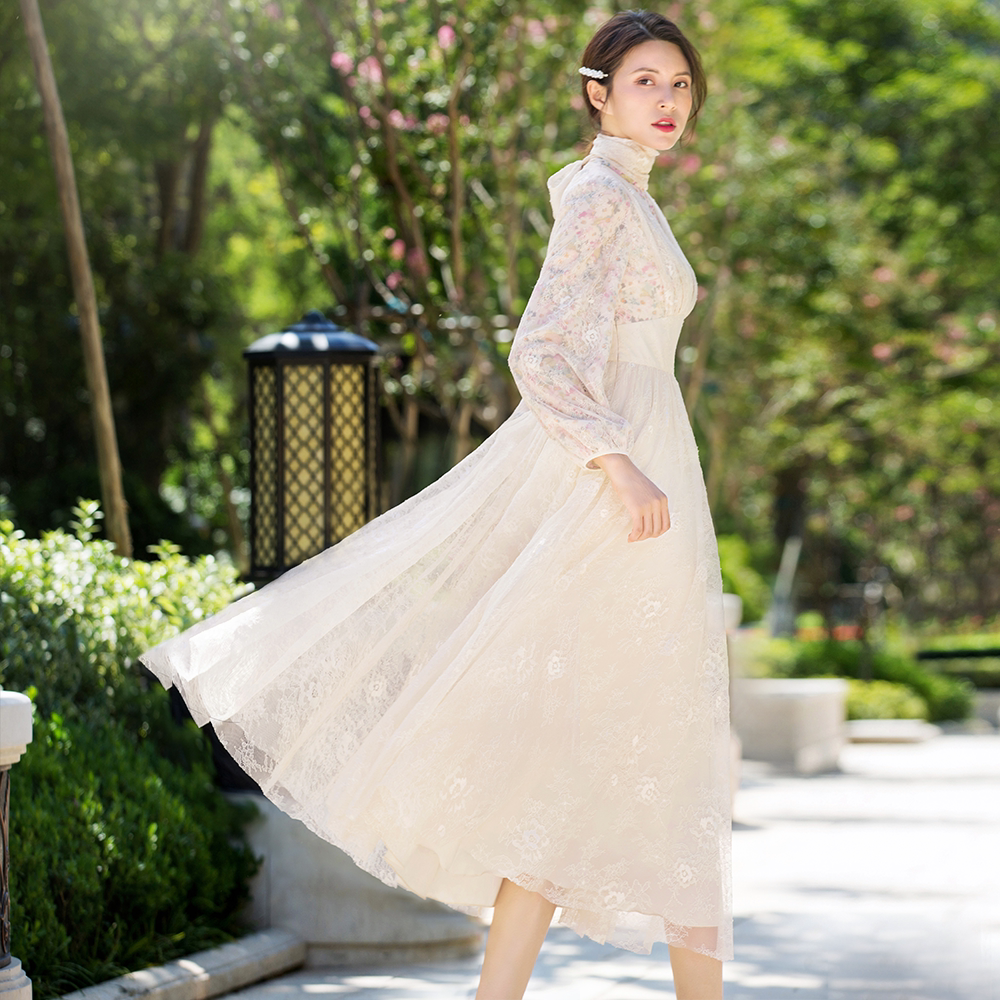 Meifei spring and autumn clothing 2021 new women's dress skirt medium-length floral lace French fairy forest