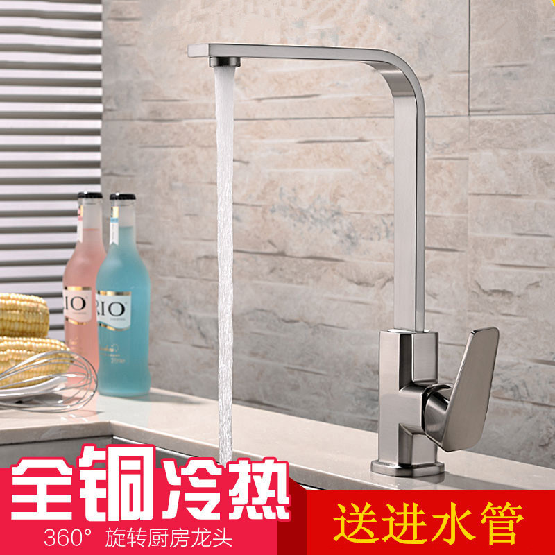 All-copper kitchen faucet single-hole universal hot and cold water wash basin stainless steel basin rotating wash head wash sink