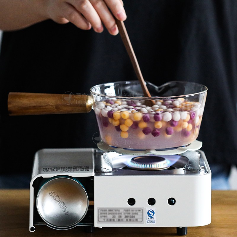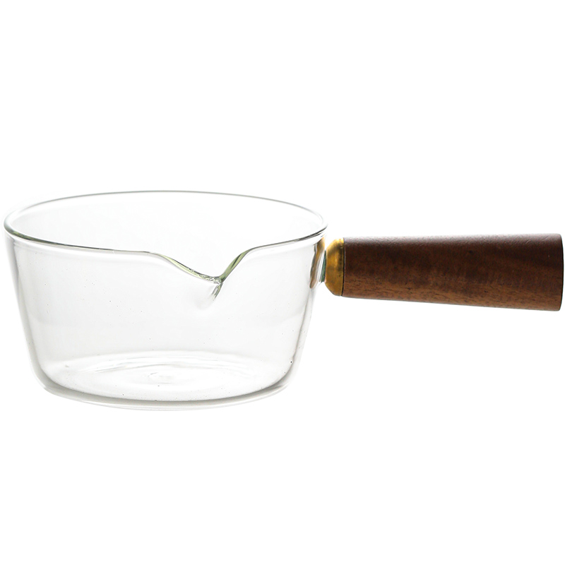 Transparent heat-resistant glass milk pot Wooden handle pot Baby food pot Boiled instant noodles Dessert pot Small soup pot Hot milk pot