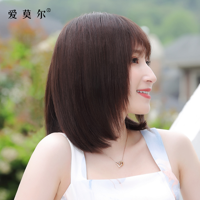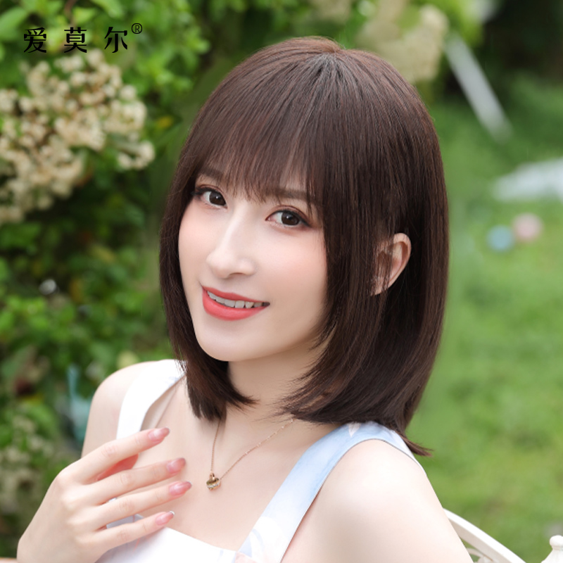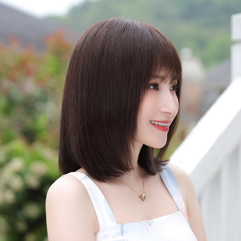 Wig woman short hair real hair silk Xin Zhilei the same medium long hair natural girl net red collarbone hair full head cover