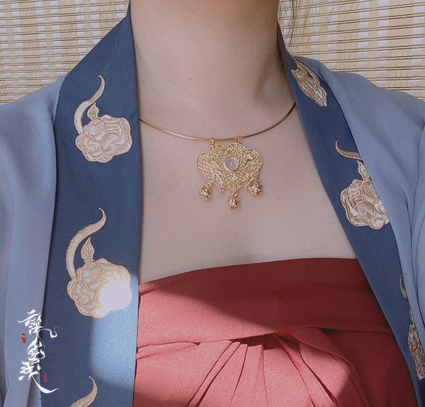 Cloud Dark Fog Shallow Lock Bronze Spring Original Pure Copper Bell and Han clothes Ying LuoXiang Necklace Manau Ancient Wind Qipao Qipao Jewelry Accessories