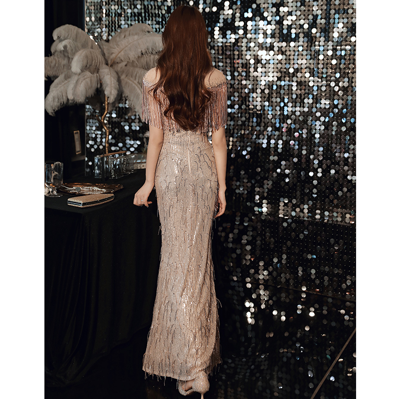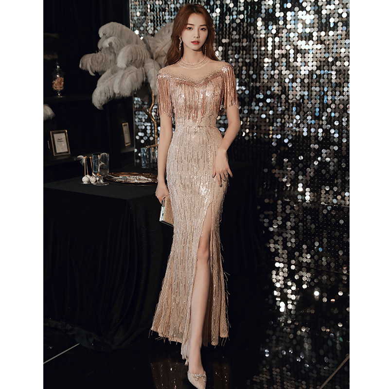 Host Evening Dress Skirt High-end Sense Niche Light Luxury High-end Banquet Temperament Slim Sequins Fishtail Long Tassels