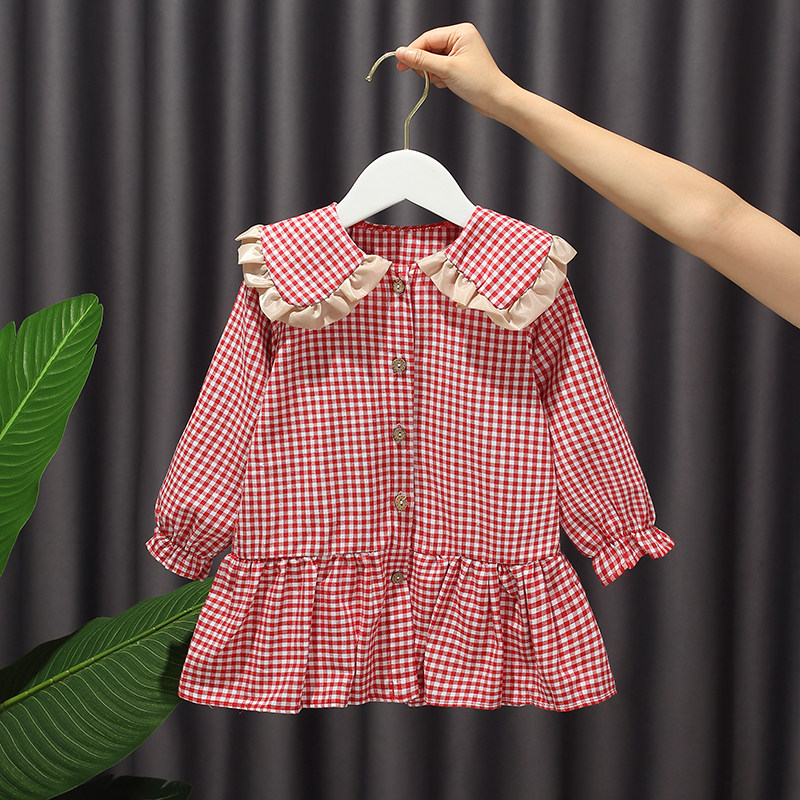 Girl Foreign Dress Spring Autumn Season Children Little Girl Plaid Dolls Collar Princess Dresses Baby Girl Baby Long Sleeve Dresses