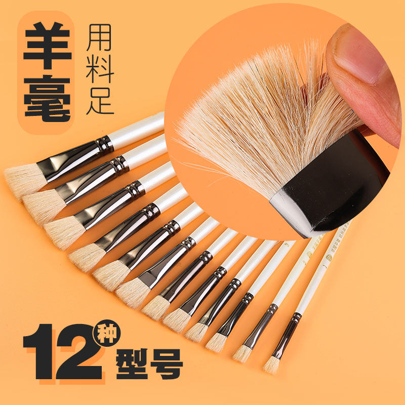 Hangzhou Fine Art Gallery Pure Wool Flat Head Brush Water Color Pen Single Water Color Painting Pen Wool Brush Brush Suit