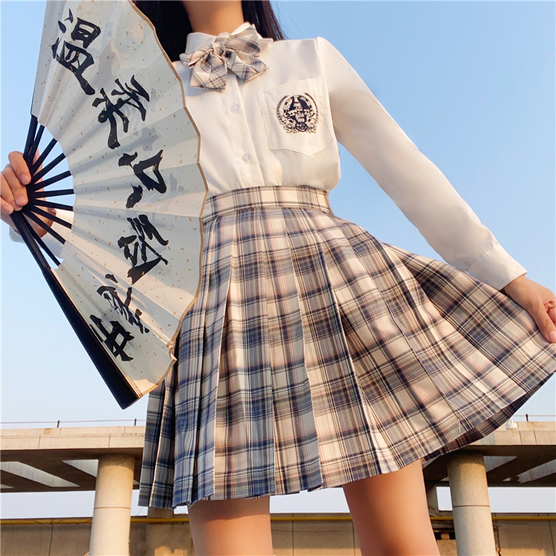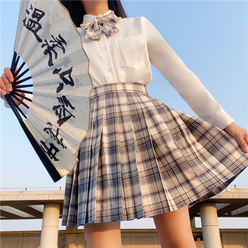 Script JK original (Zhaohui) blue warm color uniform genuine jk plaid skirt pleated skirt Japanese last dropped