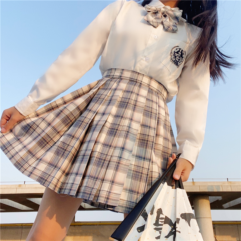 Check skirt with the same bow tie Haohai long-sleeved shirt Basic long-sleeved shirt Basic long-sleeved three-piece suit